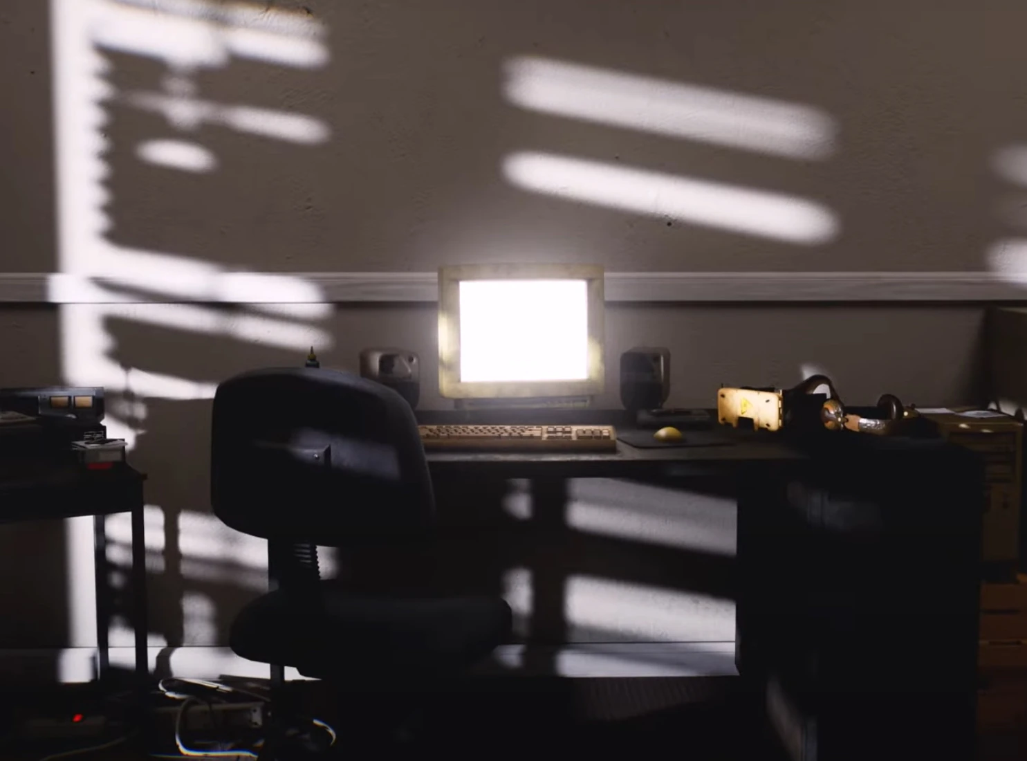 Нарешті його видно вдруге після того, як камера віддаляється повз безодню, показуючи фактичний комп’ютер у майже тому самому положенні та кімнаті, що й у дверях виходу. У цьому випадку екран увімкнено, сонячне світло видно через жалюзі ліворуч від комп’ютера, а світло в кімнаті вимкнено.